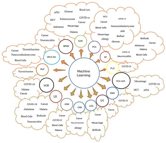 Graphical schematization of the most frequently used ML methods in the FTIR analysis of different diseases.