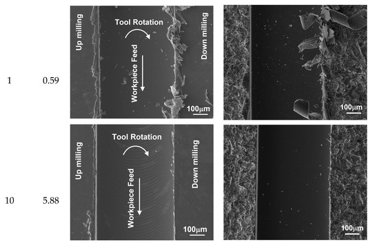 57. Chen, L.; Deng, D.; Pi, G.; Huang, X.; Zhou, W. Burr formation and surface roughness characteristics in micro-milling of microchannels. Int. J. Adv. Manuf. Technol. 2020, 111, 1277–1290. [Google Scholar] [CrossRef]