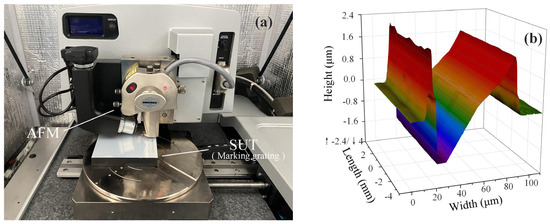 Figure 18. (a) Atomic force microscopy (AFM) was used to obtain true values. (b) The fitting results were obtained on the upper surface of the scratch grating with a nominal tilt value of 3°.
