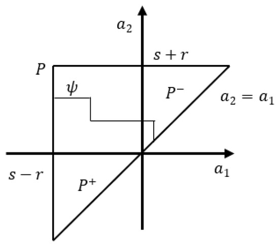 Suppose that is a curve that divides the Preisach plane P into two different areas; a positive area , in which the relays take the output values of +1, and a negative area , in which the relays take the output values of −1, as depicted in Figure 6. In this case, the output response of the Preisach model can be rewritten as: