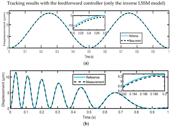 Tracking results obtained by only the inverse LSSVM model-based controller for (a) reference signal A; (b) reference signal B.