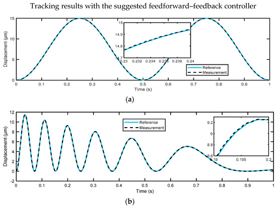 Tracking results obtained by the proposed control scheme for (a) reference signal A; (b) reference signal B.