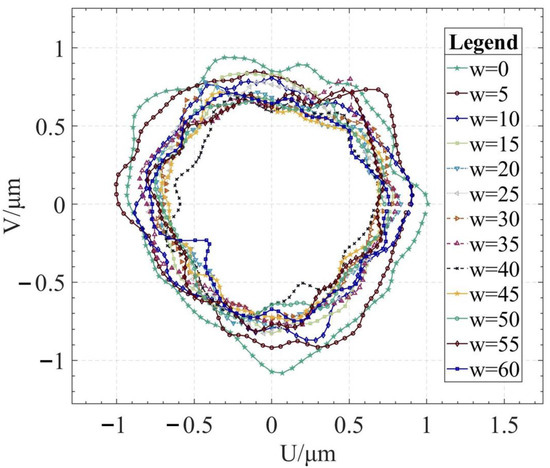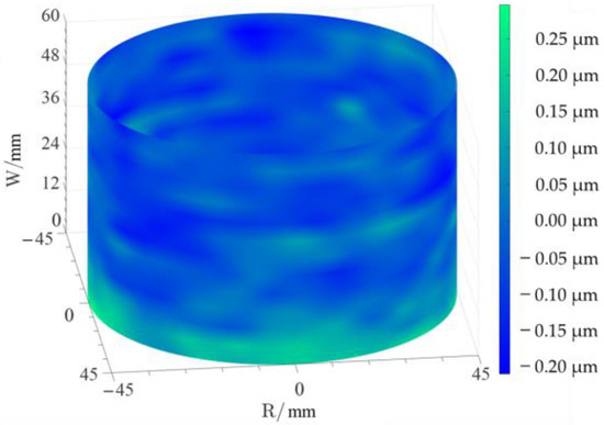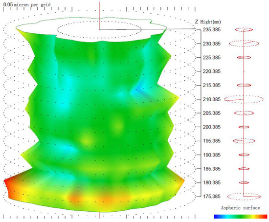 As shown in Figure 13, the cylindrical shape is verified using a Taylor Hobson roundness meter, and the measured area is consistent with the in situ measurement experiment. The cylindrical shape measured by the roundness meter is shown in Figure 14.