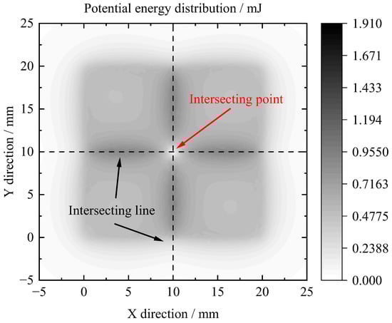 The distribution of the potential energy above the PM array can be obtained as depicted in Figure 3. It is evident that the potential energy reached its maximum at the intersecting line of the PM arrays and its minimum at the intersecting point. This observation suggested that the centroid of pyrolytic graphite will be levitated in a stable manner above the intersection point of the PM arrays.