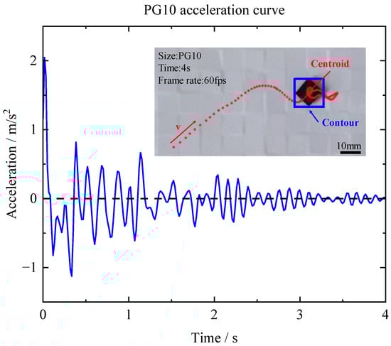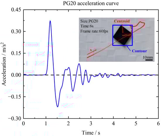 In this experiment, PG10 (10 × 10 × 0.5 mm3) and PG20 (20 × 20 × 0.5 mm3) were used to investigate the in-plane force. The outcomes shown in Figure 6 and Figure 7 indicated that PG10 demonstrated a greater acceleration and stabilization rate compared with PG20. The in-plane force F can be calculated by