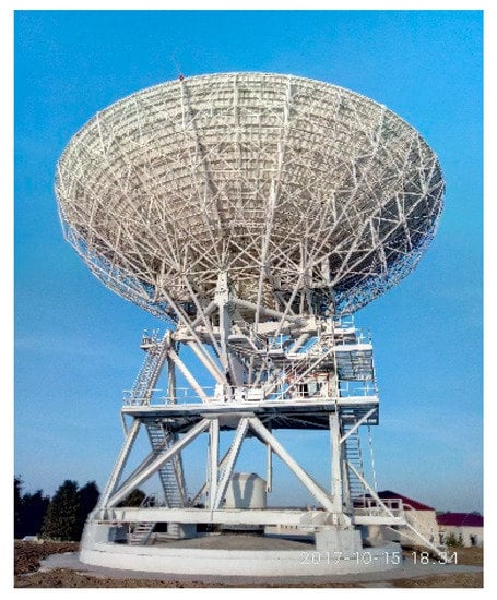 - Kong, D.Q.; Li, C.L.; Zhang, H.B.; Su, Y.; Liu, J.J.; Zhu, X.Y.; Li, J.D.; Xue, X.P.; Li, C. The new wuqing 70 m radio telescope and measurements of main electronic properties in the X-band. Res. Astron. Astrophys. 2022, 22, 124–134. [Google Scholar] [CrossRef]