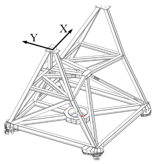 From the perspective of antenna components, a major source of pointing errors is the antenna alidade [,,]. The alidade is the foundation of the antenna, an important part of the antenna azimuth and elevation motion mechanism since it plays a significant role in ensuring perfect orthogonality between the azimuth axis and the elevation axis of the antenna. The pointing errors caused by the alidade are mainly caused by two reasons: one is the real-time change in the environmental load, such as temperature gradients [,,,], and the other is by the track unevenness [,,]. When there are temperature gradients on the alidade due to solar irradiation, or unevenness on the track, the alidade will deform and tilt, resulting in non-orthogonality of the axis system, and further pointing error. Some experimental and simulation studies prove the pointing error caused by solar radiation and orbital unevenness account for a large part of the antenna’s overall pointing error.