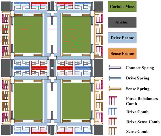 2.1. Structure of the Four-Mass Vibration MEMS Gyroscope