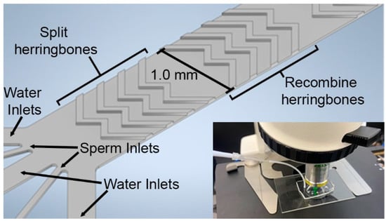 - Phiphattanaphiphop, C.; Leksakul, K.; Phatthanakun, R.; Khamlor, T. A novel microfluidic chip-based sperm-sorting device constructed using design of experiment method. Sci. Rep. 2020, 10, 17143. [Google Scholar] [CrossRef]