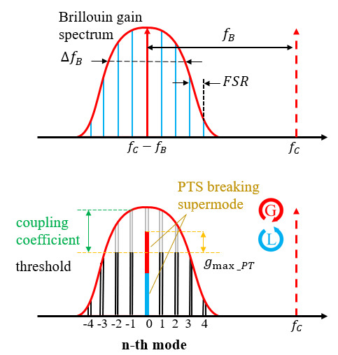 In addition, if the SBS gain of the primary mode () exceeds the oscillation threshold, while the SBS gain of other modes is below the threshold, the Single Longitudinal Mode can also be achieved in conventional BFL. Under this condition, the maximum gain contrast of SBS is determined by