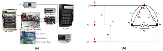 Open-loop inverter operation experiment: (a) Configuration; (b) Delta load connection.
