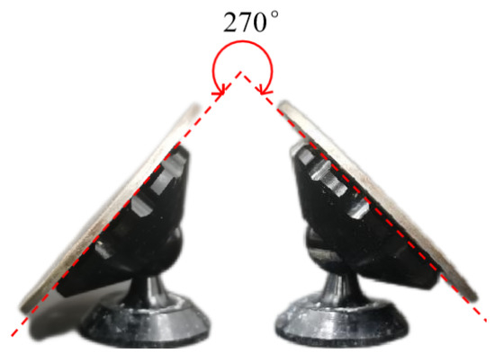 To ensure the micro-channels’ structural integrity and average depth, it is necessary to ensure the parallelism between the template tool and the workpiece. Given the above problems, the author added a leveling device in the working fluid tank. The device can be rotated 360° in the horizontal direction and adjustable in the vertical direction from 0 to 270°. The actual picture is shown in Figure 7.