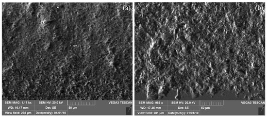 Micro-morphology of the micro-grooves surface under different processing methods: (a) electrophoretically assisted micro-ultrasonic machining; (b) micro-ultrasonic machining.