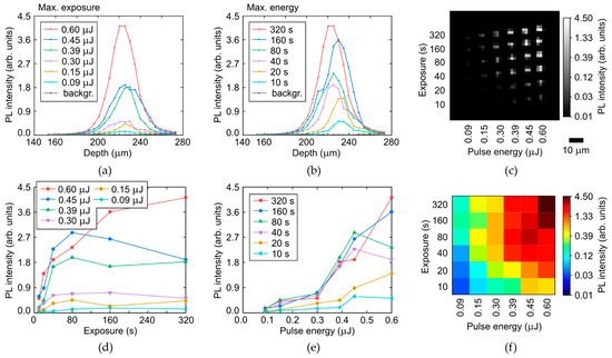 - Kudryashov, S.; Danilov, P.; Smirnov, N.; Krasin, G.; Khmelnitskii, R.; Kovalchuk, O.; Levchenko, A. “Stealth Scripts”: Ultrashort Pulse Laser Luminescent Microscale Encoding of Bulk Diamonds via Ultrafast Multi-Scale Atomistic Structural Transformations. Nanomaterials 2023, 13, 192. [Google Scholar] [CrossRef]