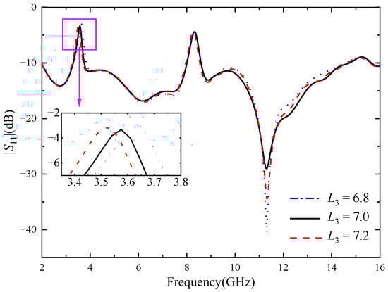 Figure 4. Reflection coefficient of different L3, the unit of L3 size (mm).