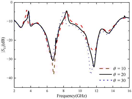 Figure 13. |S11| with different θ, the unit of θ size (degree).