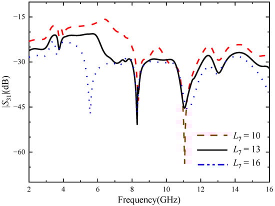 Figure 14. |S31| with different L7, the unit of L7 size (mm).