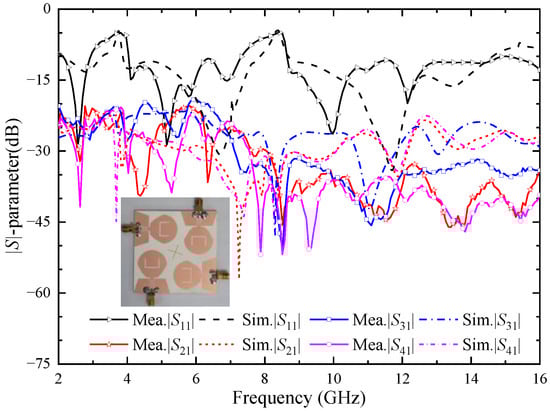 Figure 20. Simulation and measured |S|-parameters of the proposed four-element MIMO antenna.
