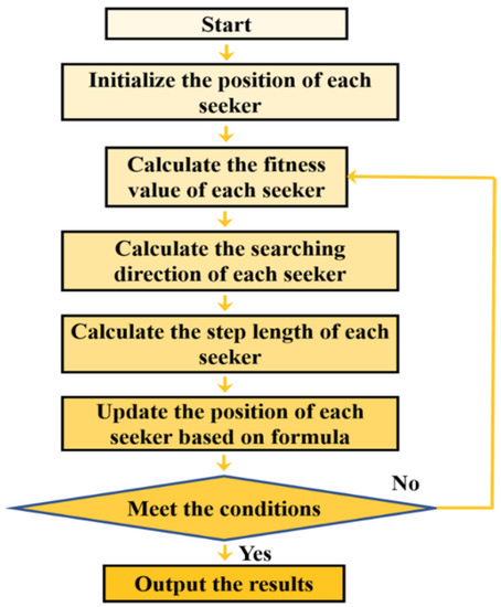 After initializing the position of the seekers, the SOA enters into an iterative process with chaotic disturbance. The chaotic disturbance alters the position equations of the seekers in various ways (shown in Equations (14)–(16)).