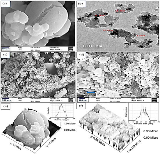 The surface characteristics of the prepared P2ABT were determined through SEM analyses (Figure 2a). This figure suitably illustrates the formation of the broken ball-like-shaped P2ABT with a large surface area. This polymer has a particle size of about 120 to 800 nm; this confirms the formation of nano/micropolymers. The great surface area of this polymer motivates the composite formation through the reaction in the presence of additional materials [40,41,42].