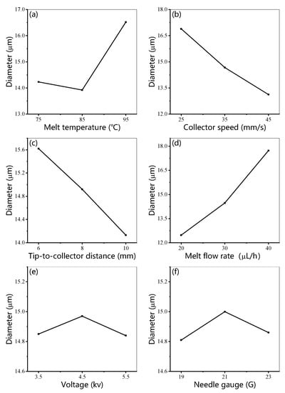 APA StyleXie, Y., Fang, Q., Zhao, H., Li, Y., Lin, Z., & Chen, J. (2023). Effects of Six Processing Parameters on the Size of PCL Fibers Prepared by Melt Electrospinning Writing. Micromachines, 14(7), 1437. https://doi.org/10.3390/mi14071437