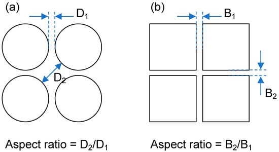 Definition of the aspect ratio for (a) Type I and (b) Type II geometry in this study.