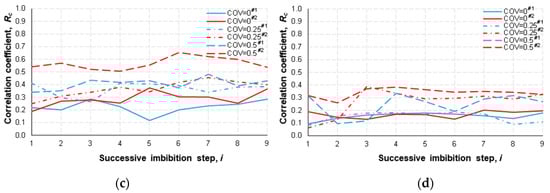 Similar to the drainage process, Rc was larger in the heterogeneous models at Q = 0.01 mL/min (Rc = 0.1–0.3 at COV = 0 vs. Rc = 0.35–0.65 at COV = 0.5; Figure 6c). Noticeably, even when the flow rate increased, Rc was still higher in the heterogeneous models (Rc = 0.1–0.2 at COV = 0 vs. Rc = 0.1–0.4 at COV = 0.5 when Q = 0.1 mL/min; Figure 6d). This trend is opposite to that in the Type I study. In addition, it is worth noting that Rc at Q = 0.1 mL/min was smaller than that at Q = 0.01 mL/min for the same pore structures. This supports our observation that the effect of the flow rate outweighs that of structural heterogeneity as the flow rate increases (compare Figure 6c with Figure 6d).