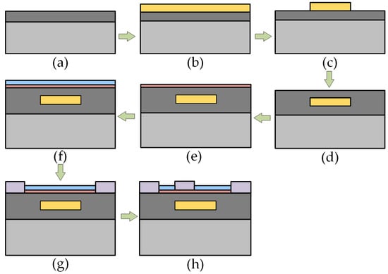In order to illustrate how the PBL GaN HEMT can be implemented, Figure 2 presents a schematic diagram of the actual manufacturing process steps for the device.