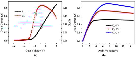 (a) The transfer characteristic curves of Cov GaN HEMT. (b) The output characteristic curves of Cov GaN HEMT.