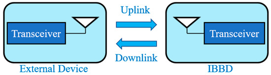 Figure 3 shows a generalized wireless communication link between an external device and an IBBD with a transceiver system and an antenna on each side.