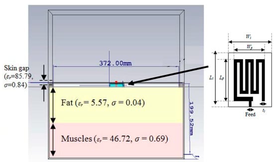 - Soontornpipit, P.; Furse, C.M.; Chung, Y.C. Design of Implantable Microstrip Antenna for Communication with Medical Implants. IEEE Trans. Microw. Theory Tech. 2004, 52, 1944–1951. [Google Scholar] [CrossRef]
