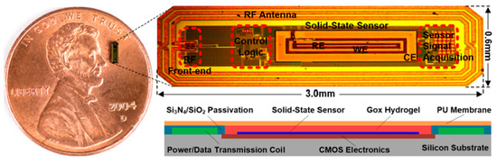 - Mujeeb-U-Rahman, M.; Nazari, M.H.; Sencan, M.; Van Antwerp, W. A Novel Needle-Injectable Millimeter scale Wireless Electrochemical Glucose Sensing Platform for Artificial Pancreas Applications. Sci. Rep. 2019, 9, 17421. [Google Scholar] [CrossRef] [PubMed]