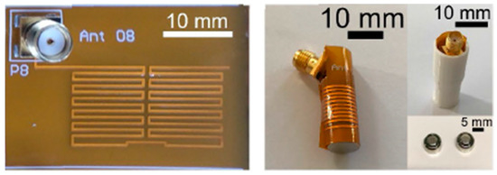 - Chien, T.-F.; Cheng, C.-M.; Yang, H.-C.; Jiang, J.-W.; Luo, C.-H. Development of Nonsuperstrate Implantable Low-Profile CPW-Fed Ceramic Antennas. IEEE Antennas Wirel. Propag. Lett. 2010, 9, 599–602. [Google Scholar] [CrossRef]