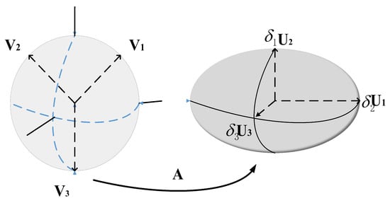 If denotes the unit error sphere in n − 1 dimensional space, the sphere becomes an ellipsoid, as shown in Figure 5 after mapping by matrix M. The ellipsoidal plane represents the position error space of the system, and the magnitude of the singular values of the matrix M determines its axis length or stretching or compression. Thus, the matrix M reflects the spatial layout of the base station and also determines the intrinsic characteristics of the system. The optimal matrix M is obtained when its singular value is small enough so that the system can act as an attenuation when the proper measurement value has a large error.
