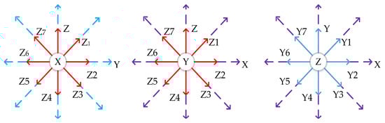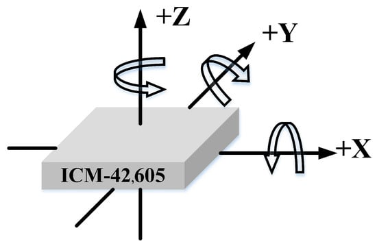 This UWB positioning system selects the forward direction of the carrier under the mine as the positive x-axis direction, the right flank direction as the positive y-axis direction, and the downward direction as the positive z-axis direction. Figure 8 shows the schematic diagram of the rotation direction of the MEMS IMU. Therefore, the carrier coordinate system chosen for this article is based on this standard, and the world coordinate system is chosen directly from the ENU coordinate system.