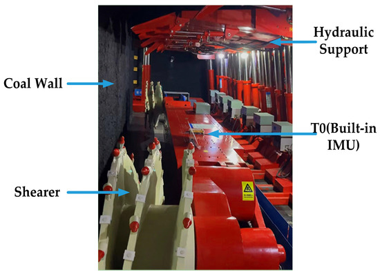 Coal is the main energy source in China [1]. The application of intelligent unmanned mining [2,3] technology to improve the level of coal mine equipment is of great importance to realize less humanized operation, unmanned mining, and reduce labor costs [4]. One of the most critical is the implementation of the linkage of the coal mining machine, scraper conveyor, and hydraulic support [5] for the comprehensive mining face. Memory cutting, hydraulic brace movements, and mining process choices are all based on the coal mining machine’s precise location. The micro-electromechanical inertial measurement unit (MIMU) [6,7] provides a wealth of navigation information for the Strapdown Inertial Navigation System (SINS) [8] with its low cost and small size. However, the MIMU orientation method is less accurate because it is more subject to ambient interference and mistakes brought on by attitude and position solving from pure inertial guiding data. Where conventional GPS [9] cannot be used in underground mine environments [10], UWB [11,12] positioning systems can be used in environments where GPS is denied. SINS has been successfully applied to the positioning of continuous coal mining machines [13,14,15].