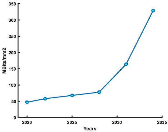 SRAM density improvement roadmap as per IRDS 2022 [10] guidelines.