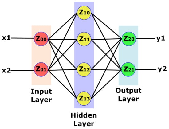 In Figure 2, we see a three-layer neural network. The first layer, known as the input layer, uses input values. The second layer or hidden layer is composed of hidden neurons (z) whose activation is dependent on the synapses’ values and a specific function, known as the activation function. The third layer is referred to as the output layer. Each layer connects itself to the next layer’s neurons via connections or synapses. These connections carry weights; an NN trainer tunes weight values during the training phase.