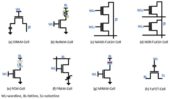 Single-cell configurations of state-of-the-art memories [47,48,49,50,51,52,53,54].