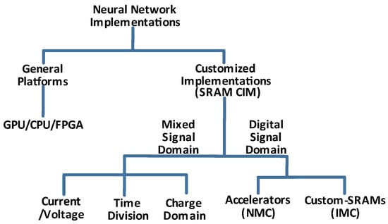 The mixed-signal domain is energy efficient and provides simultaneous activation of multiple SRAM rows. We can further divide it into three distinct classes, as shown in Figure 6.