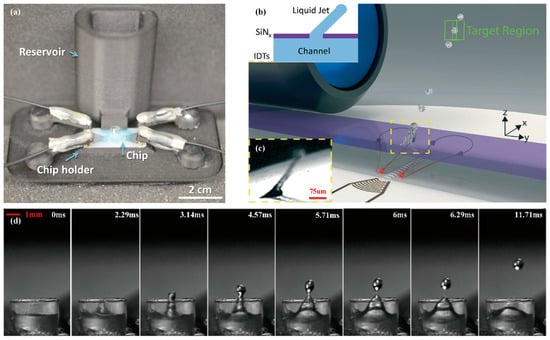 - Huang, D.; Kim, E.S. Micromachined acoustic-wave liquid ejector. J. Microelectromechanical Syst. 2001, 10, 442–449. [Google Scholar] [CrossRef]