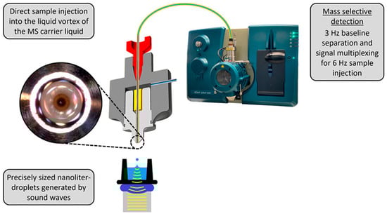 - Habe, T.T.; Liu, C.; Covey, T.R.; Simon, R.P.; Reindl, W.; Buttner, F.H.; Winter, M.; Bischoff, D.; Luippold, A.H.; Runge, F. Ultrahigh-Throughput ESI-MS: Sampling Pushed to Six Samples per Second by Acoustic Ejection Mass Spectrometry. Anal. Chem. 2020, 92, 12242–12249. [Google Scholar] [CrossRef] [PubMed]