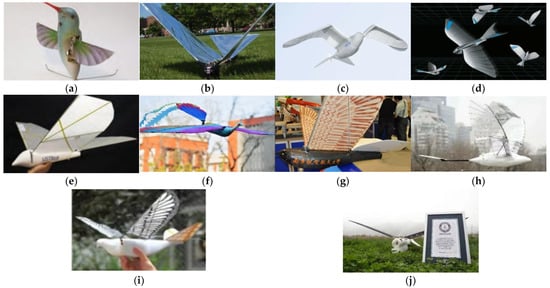 International BFAVs: (a) Nano Hummingbird; (b) Robo Raven; (c) SmartBird; (d) BionicSwifts; (e) USTBird; (f) HIT-Phoenix; (g) Sky Hawk; (h) Two-jointed bird; (i) Dove; (j) Cloudy Owl. These figures are taken from the internet.