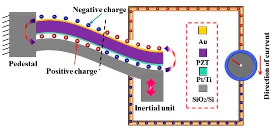 where d = h/2 is the distance between the neutral plane of the cantilever beam and the piezoelectric layer. According to Hooke’s law, the displacement of the inertial unit is equal to the displacement of the cantilever. The elastic constant can be expressed as: