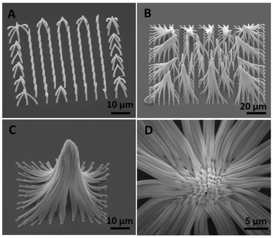 - De Volder, M.; Hart, A.J. Engineering hierarchical nanostructures by elastocapillary self-assembly. Angew. Chem. Int. Ed. 2013, 52, 2412. [Google Scholar] [CrossRef]