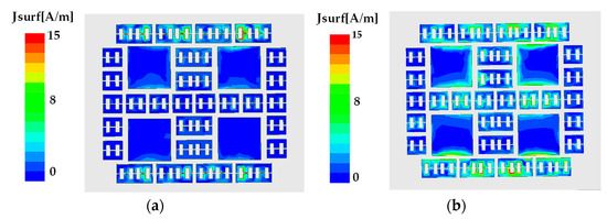 Current distribution in the hybrid metasurface. (a) ON state; (b) OFF state.