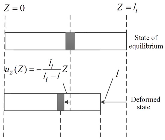 The micro-volume element (or particle) displacement in the thickness direction (i.e., Z-axis direction in Figure 2) inside the thin-wafer piezoelectric transducer can be written as follows: