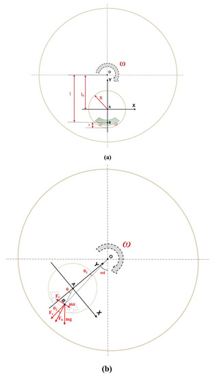 In the relative coordinate system (XY) with the origin located at the center (point A) of the cylindrical shell and synchronized with the rotational system, the dynamic equation for the slider could be obtained through the analysis of the motion process as follows: