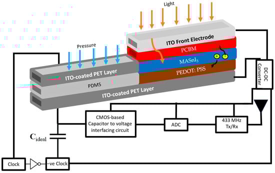 Chicago/Turabian StyleAbdellatif, Sameh O., Afaf Moustafa, Ahmed Khalid, and Rami Ghannam. 2023. "Integration of Capacitive Pressure Sensor-on-Chip with Lead-Free Perovskite Solar Cells for Continuous Health Monitoring" Micromachines 14, no. 9: 1676. https://doi.org/10.3390/mi14091676