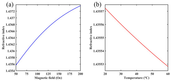 - Gu, S.; Sun, W.; Li, M.; Li, Z.; Nan, X.; Feng, Z.; Deng, M. Simultaneous measurement of magnetic field and temperature based on photonic crystal fiber plasmonic sensor with dual-polarized modes. Optik 2022, 259, 169030. [Google Scholar] [CrossRef]